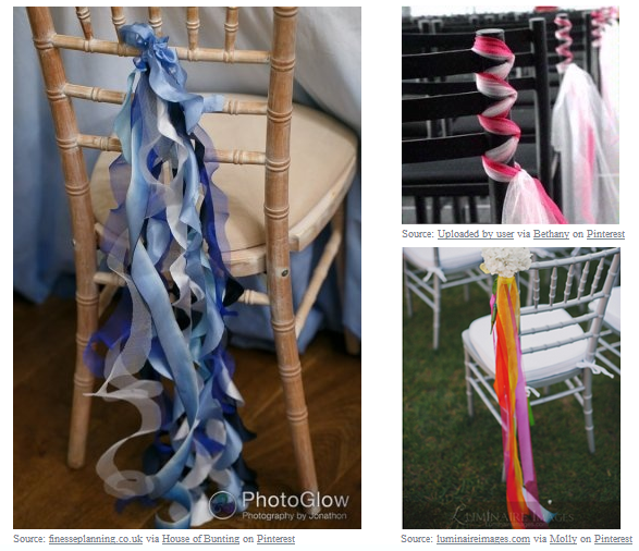 Innym rozwiązaniem jest wykorzystanie kilku lub kilkunastu wstążek, luźno przewieszonych przez oparcia krzeseł, bądź splecionych w połowie długości i spiętych ozdobnym drobiazgiem: