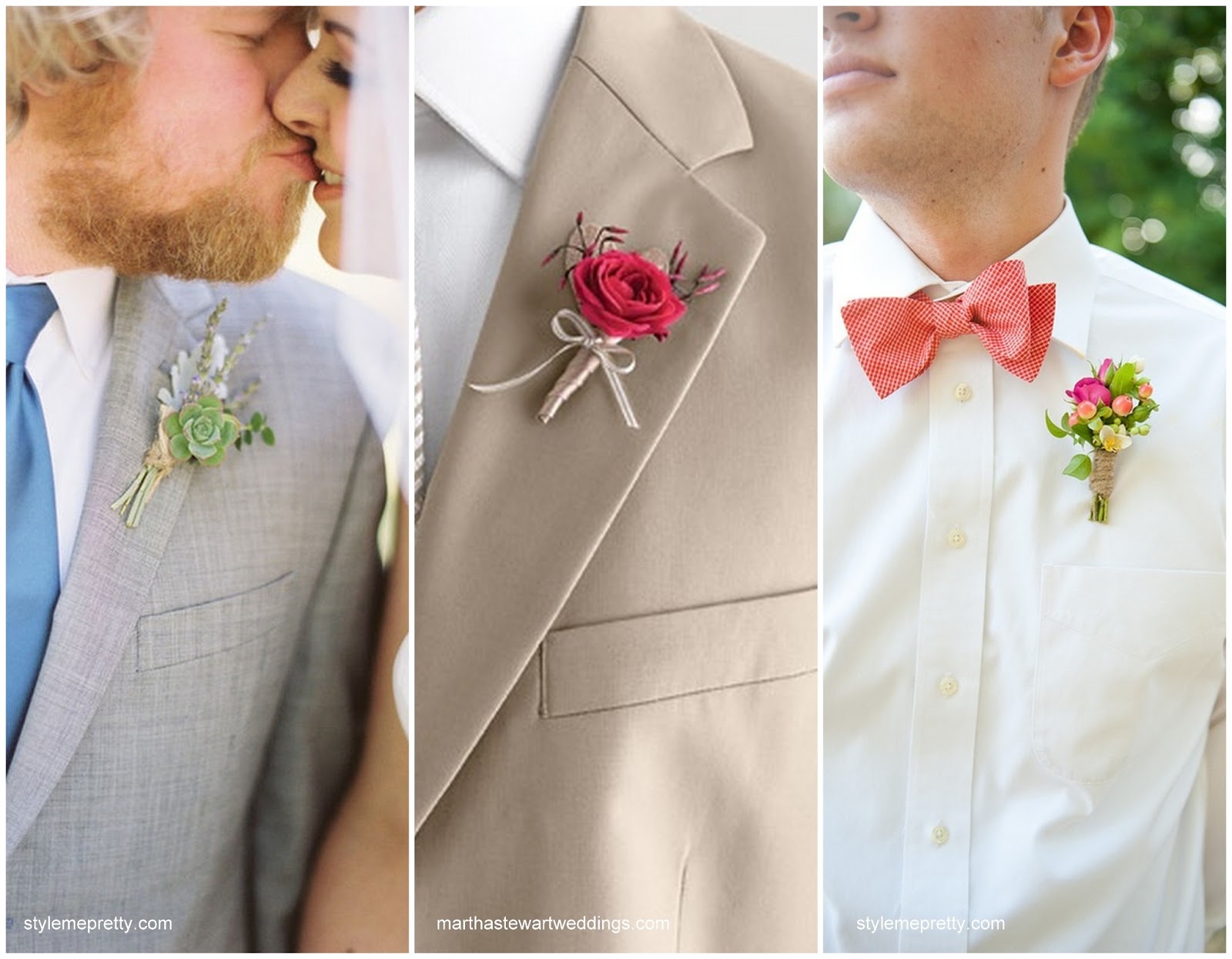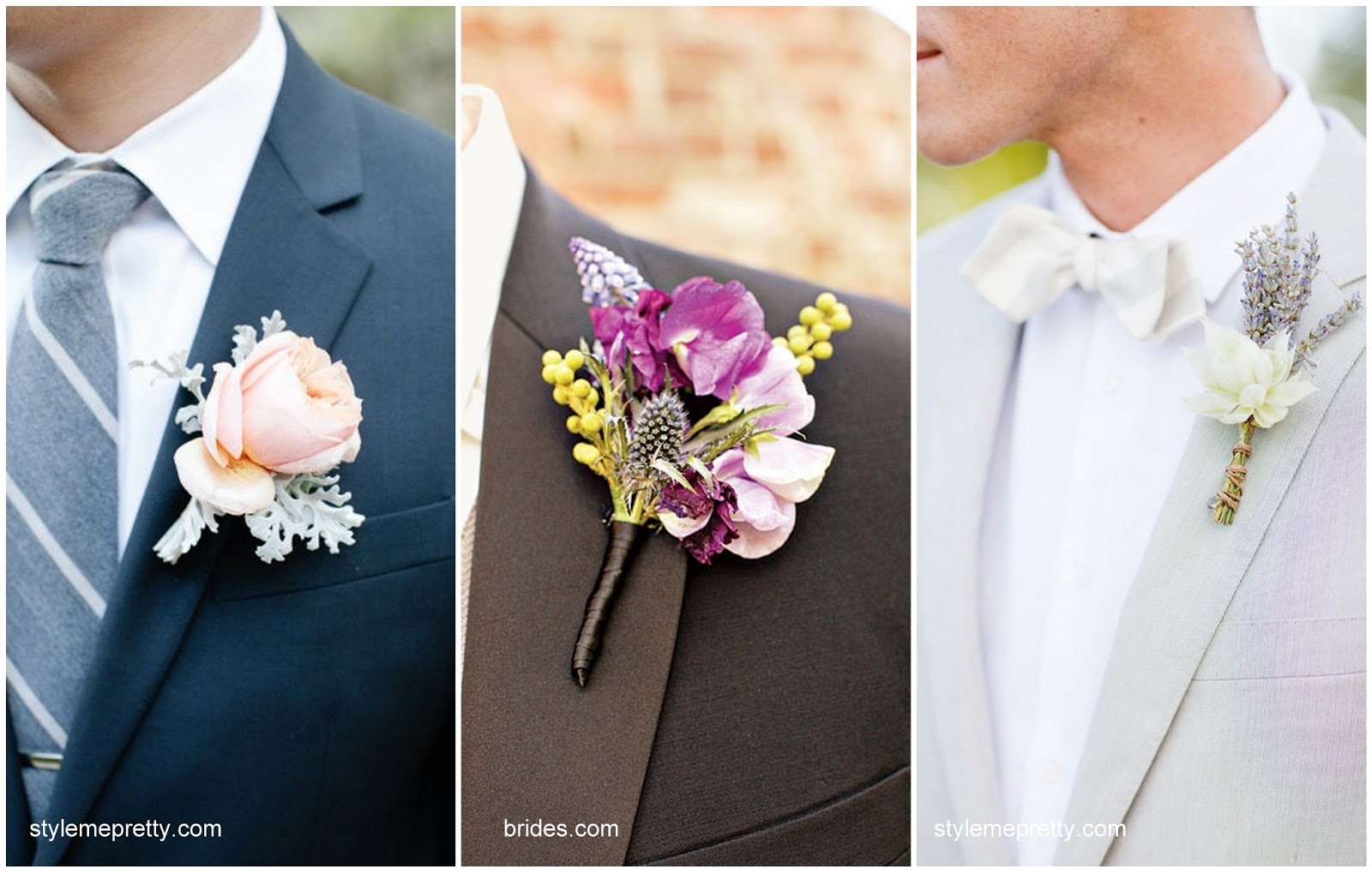 Oczywiście zawsze musicie pamiętać o tym, by ozdoba w butonierce pasowała do stroju Pana Młodego, ale także do bukietu i stroju Panny Młodej. Jeśli np. bukiet skomponowany jest z jasnych kwiatów, dobrze by było, by tego samego odcieniu była „przypinka” w klapie garnituru. Jeśli bukiet Panny Młodej jest „odważny” i wielokolorowy, w podobny sposób powinna być przyozdobiona butonierka Pana Młodego. Innymi słowy – to mężczyzna dostosowuje się do kobiety 😉 Przynajmniej w tym temacie.